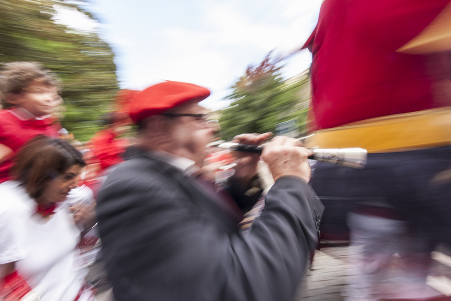 Hace unos años de entre todas las fotografías de esos días descubrí un par que me llamaron la atención y empecé a pensar en una serie a desarrollar bajo el hipotético título de “la fiesta se mueve”. Al cabo del tiempo estaba trabajando en una serie o series de posibles fotografías sobre “miradas cruzadas” y al plantearme las posibilidades recordé una de estas fotografías, en la que además del movimiento de la fiesta protagonizado por un kiliki, descubrí una mirada directa a la cámara. Entonces me planteé realizar unas sesiones de fotografías cuyo tema iba a ser el movimiento de la fiesta pero buscando las miradas cruzadas con algunos de los protagonistas de las fiestas.
